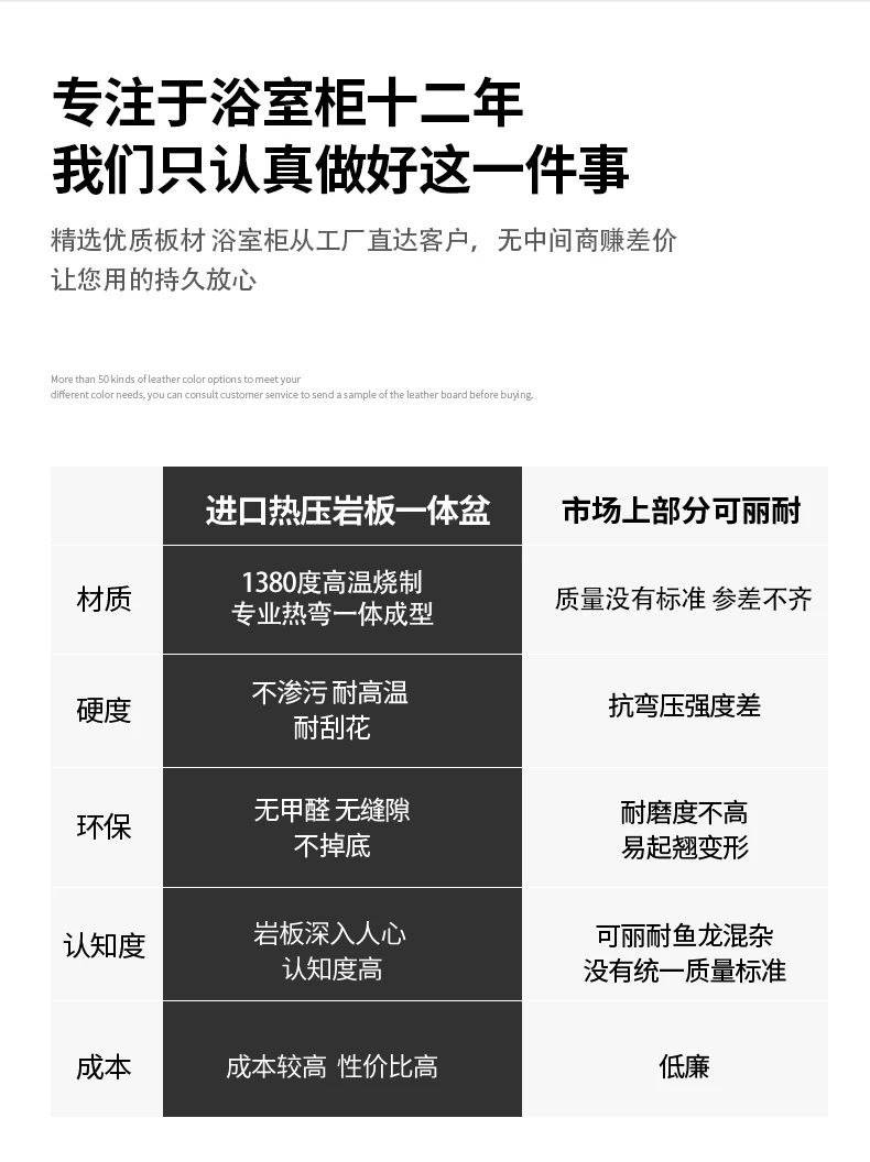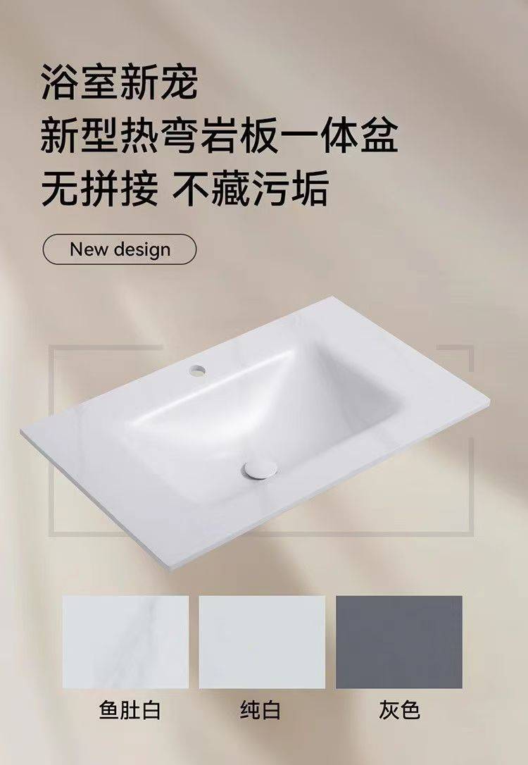 岩板热弯一体盆酒店风原木色浴室柜组合卫生间洗脸盆洗手池