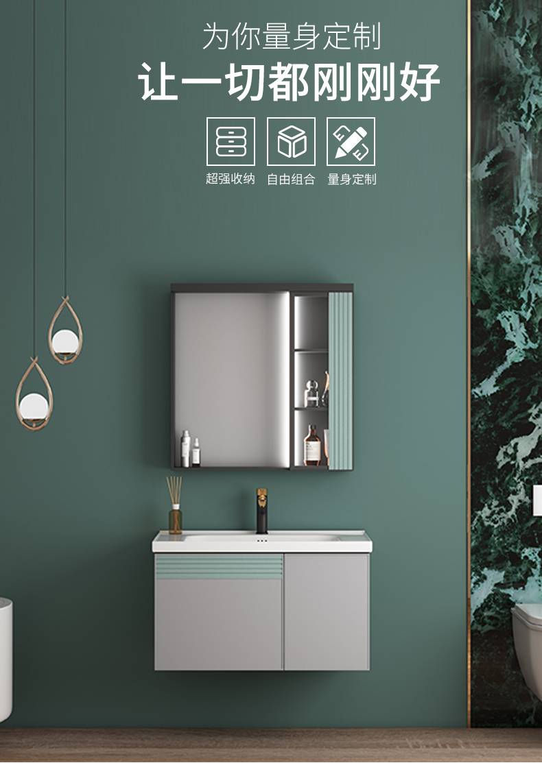 定制浴室柜简约洗手盆柜组合卫生间岩板洗脸池防水洗面盆柜