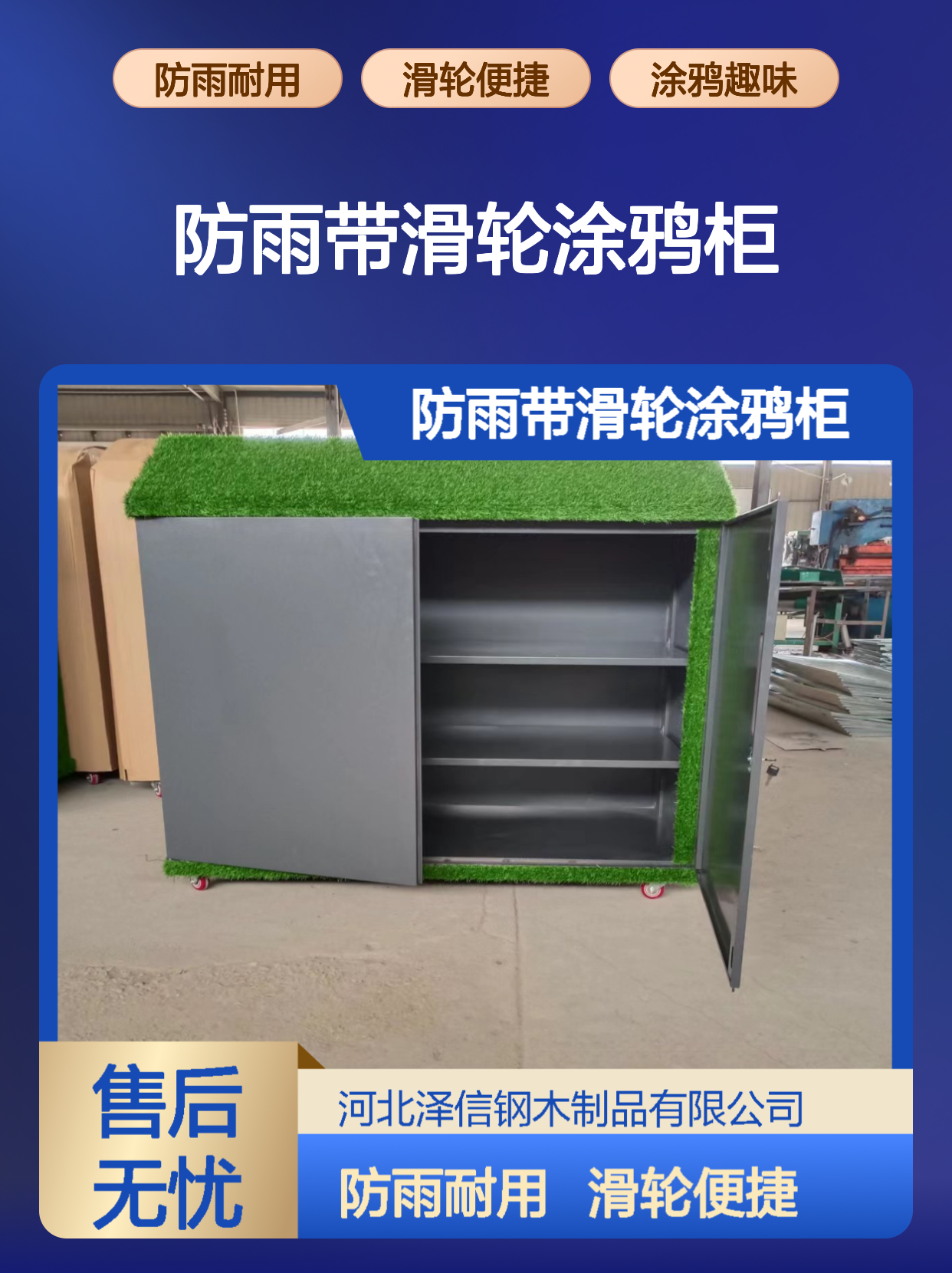 涂鸦收纳柜 幼儿园户外儿童玩具储存柜 多功能防雨带滑轮涂鸦柜 厂家