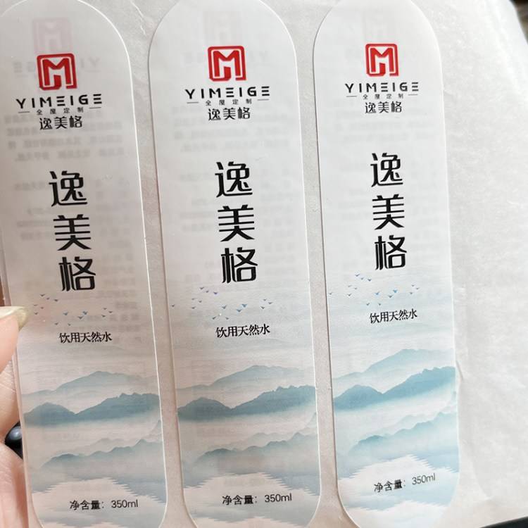 矿泉水瓶贴防水耐磨双面印珠光膜不干胶矿泉水标签