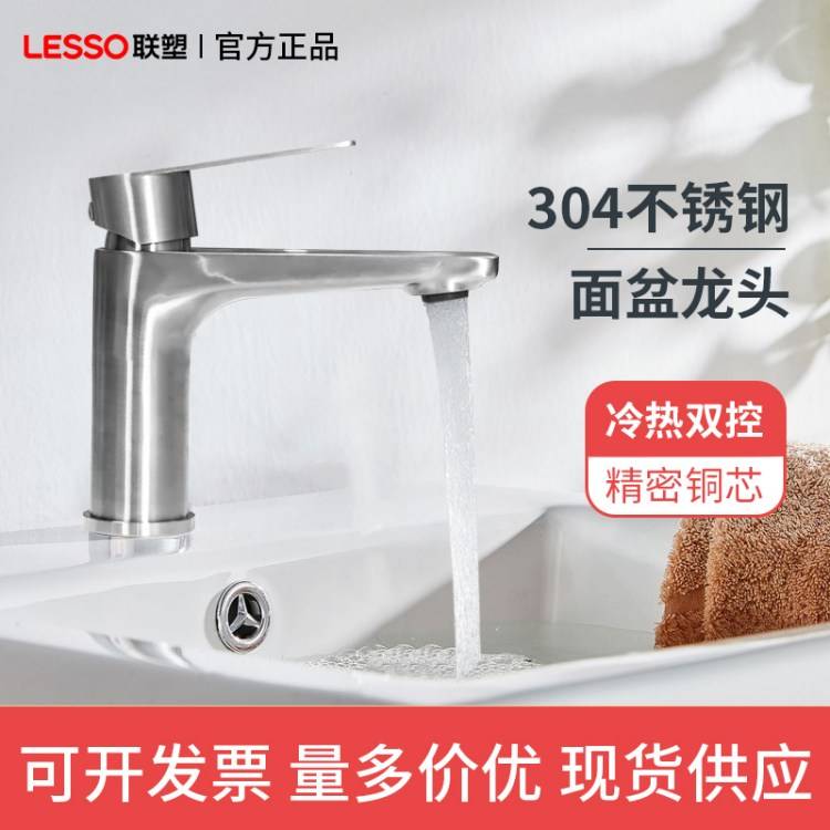 联塑304不锈钢面盆龙头 洗脸盆专用龙头 拉丝高奢质感冷热双控