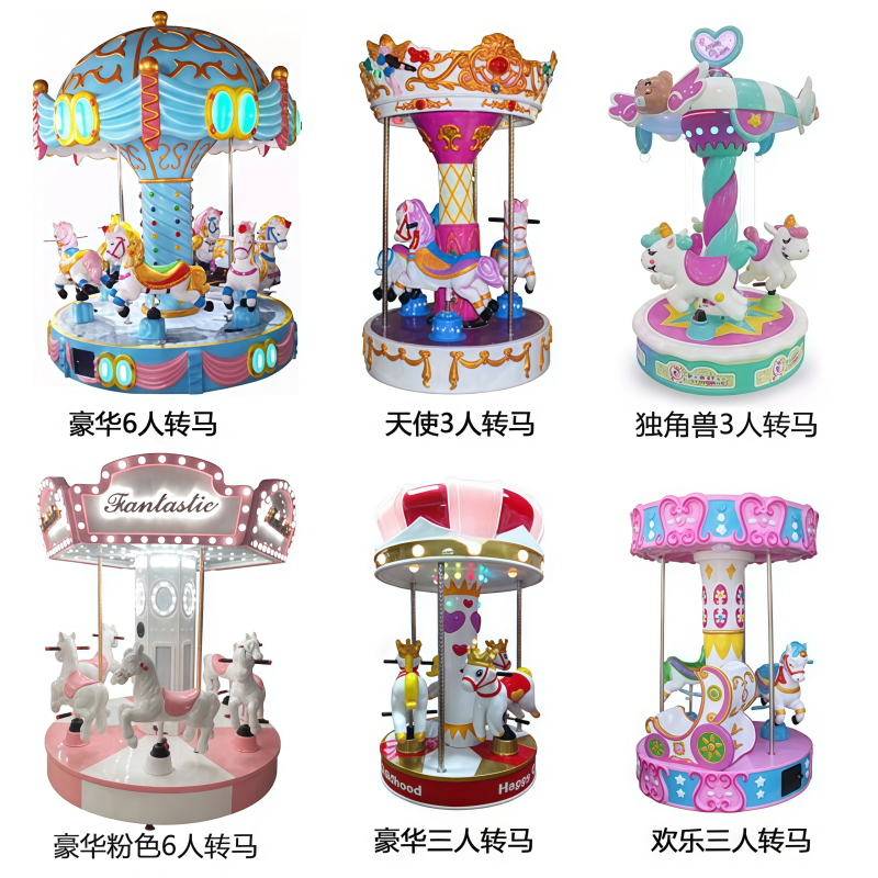 玻璃钢投币旋转木马游乐设备儿童转马游艺游戏机小型电动摇摇马