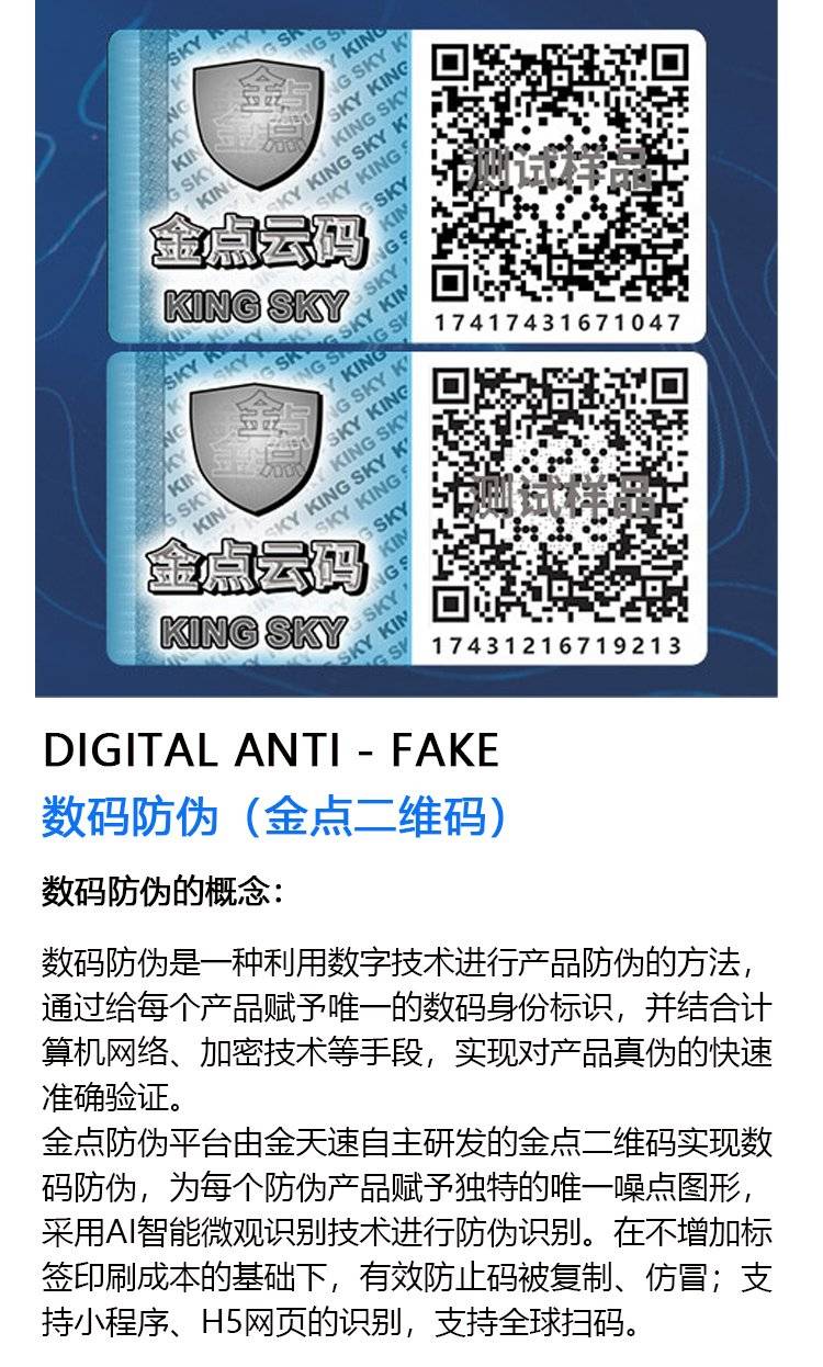 电码防伪标 防复制篡改 产品溯源管理 可定制规格