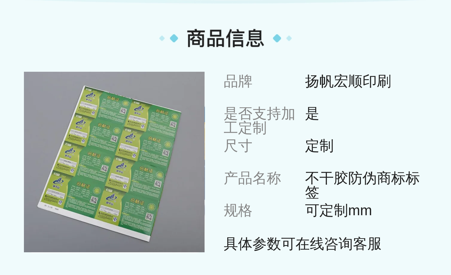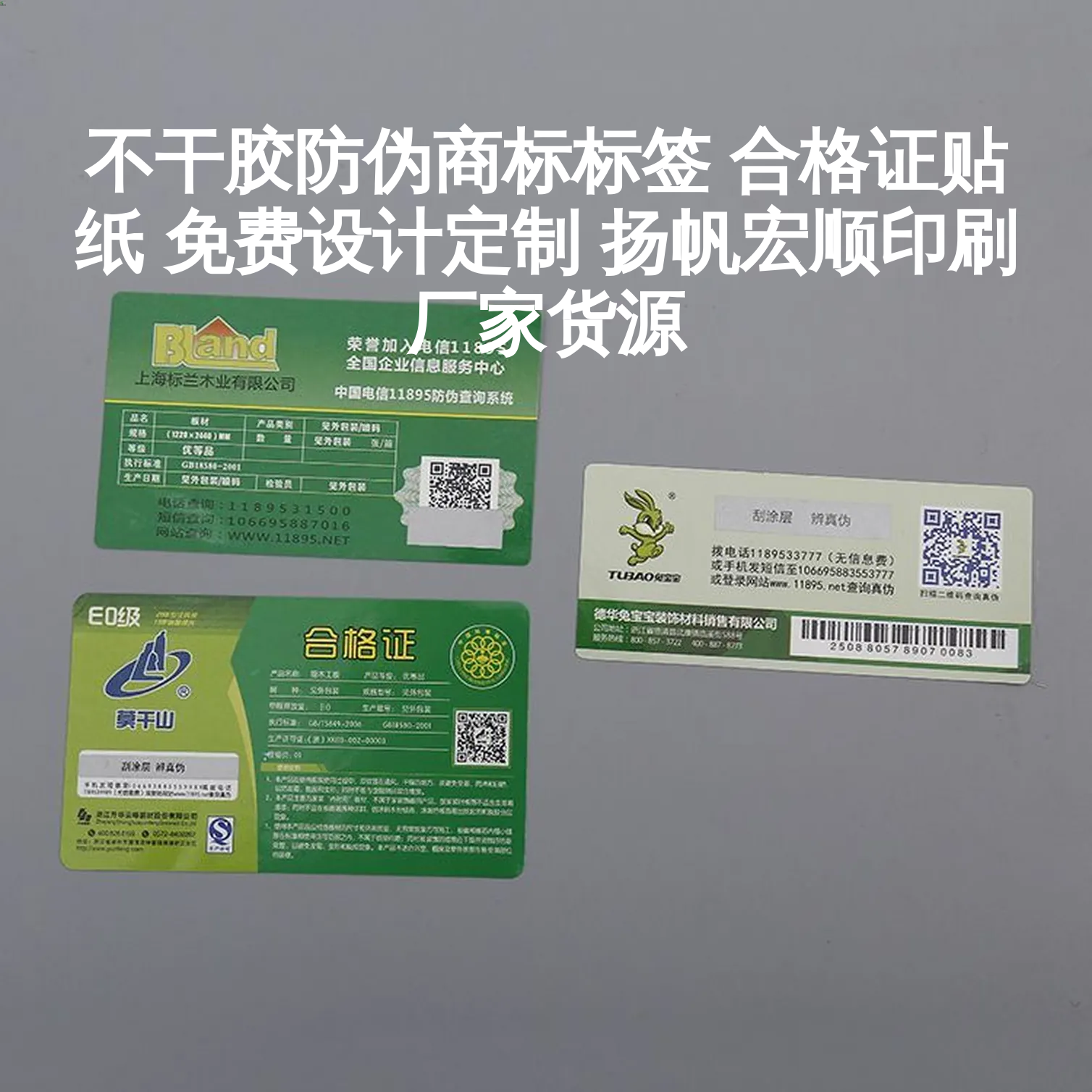不干胶防伪商标标签 合格证贴纸 免费设计定制 扬帆宏顺印刷厂家货源