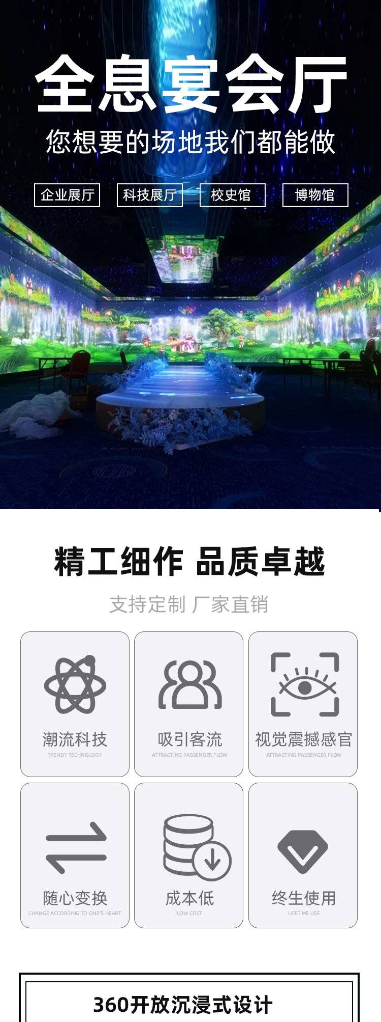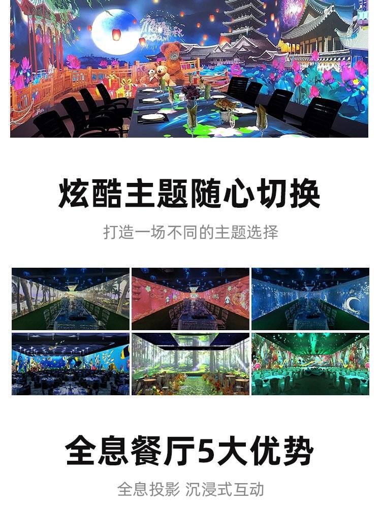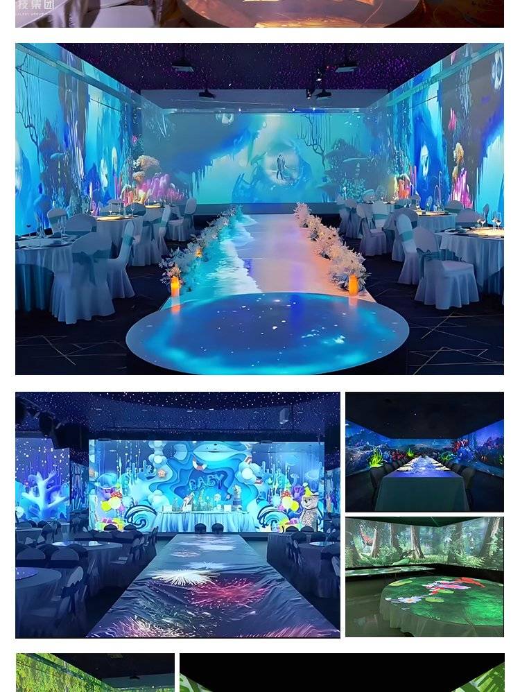 5d全息宴会厅投影机沉浸式光影互动投影餐厅光影灯墙面3d地面婚礼