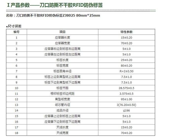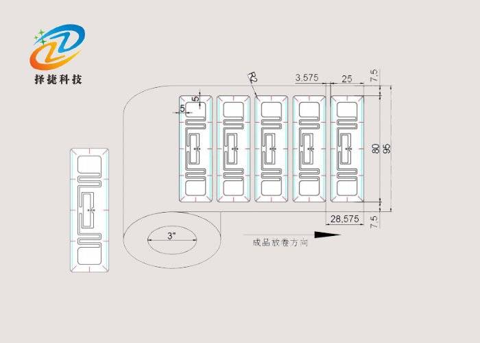 刀口防撕不干胶RFID防伪标签 80*25mm写10万次,数据保存10年