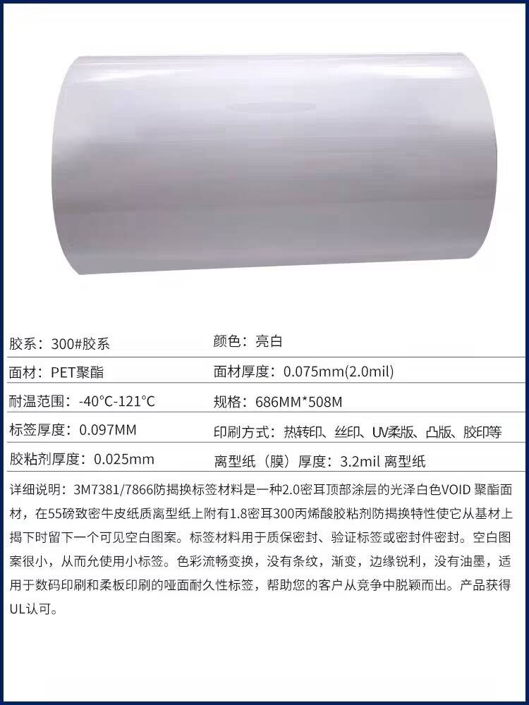 3 M 7381/7866 防伪VOID标签 防揭换PET聚酯 模切加工定制