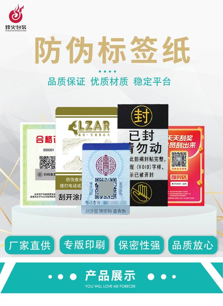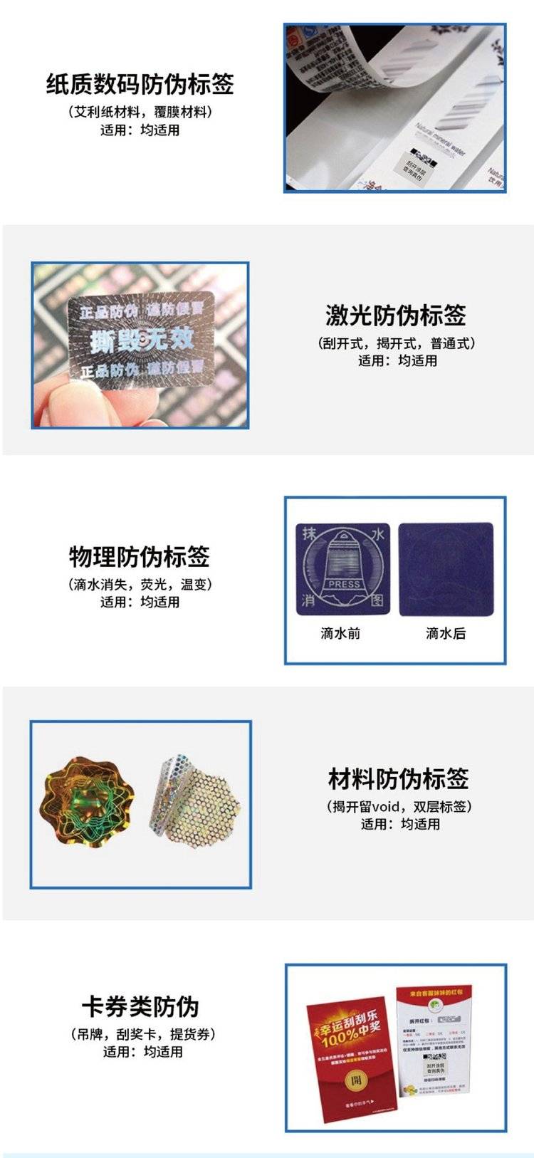 加工定制不干胶防伪标签,50余种防伪工艺,支持多种查询方式