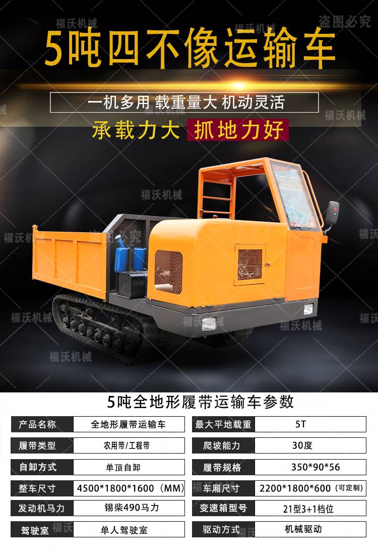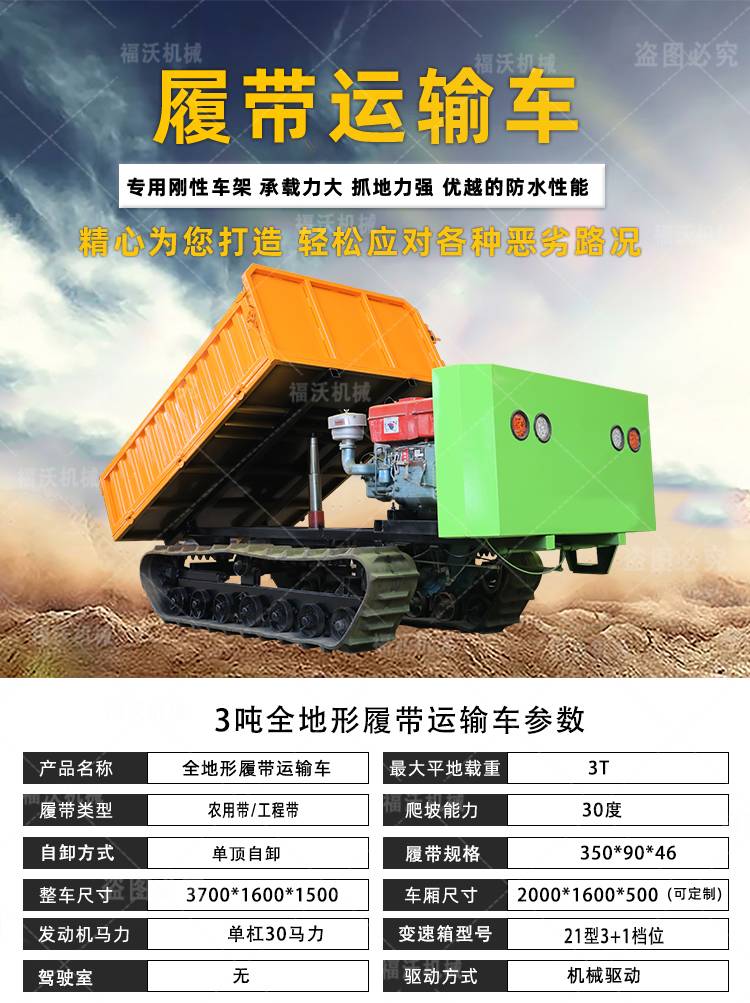 手扶履带运输车 工地载重王建筑工程自卸车 农用拉货大翻斗车