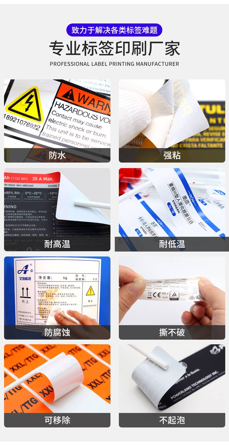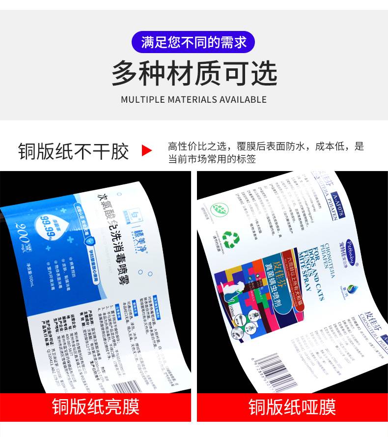 化学品不干胶定制 强力粘性 源头生产 多种材质 泉辰印刷