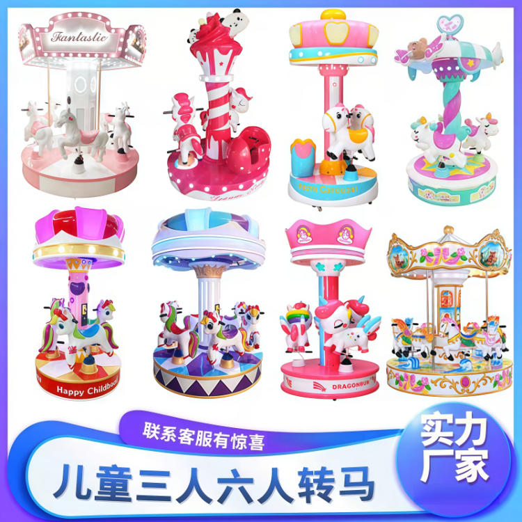 玻璃钢投币旋转木马游乐设备儿童转马游艺游戏机小型电动摇摇马
