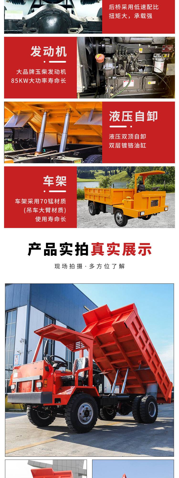 矿用四不像运输车 四驱柴油农用翻斗车 分时轮式双顶自卸车