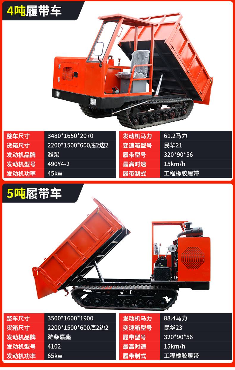 农用爬山虎运输车 4吨履带式自卸车山上拉毛竹履带翻斗车
