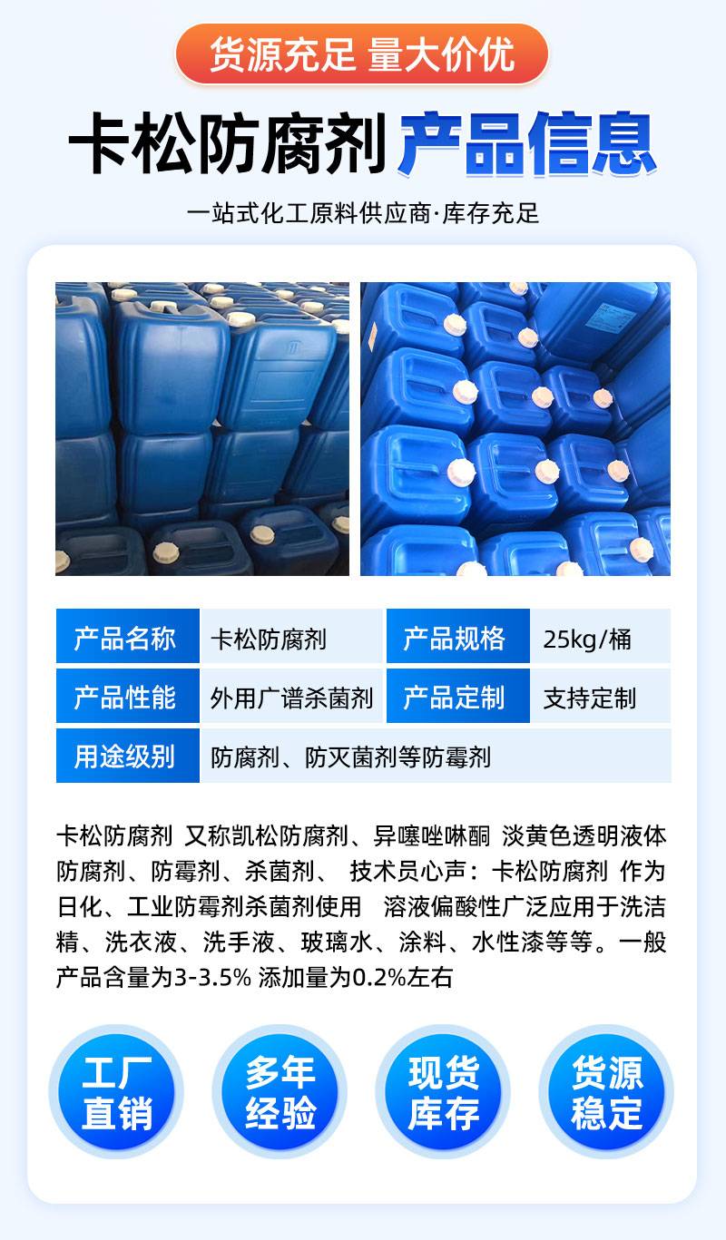 卡松防腐剂 防霉剂 工业造纸 污水处理洗涤日化原料 液体杀菌灭藻 万道