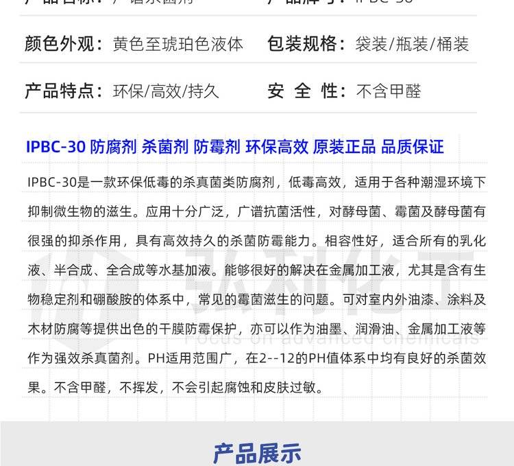 金属加工液抗菌剂 油漆涂料杀菌防霉剂 IPBC30 广谱杀真菌类防腐剂