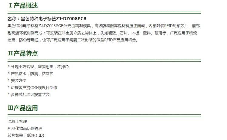 择捷智能 黑色特种标签 外壳由精制模具高级防腐耐高温材料压注而成