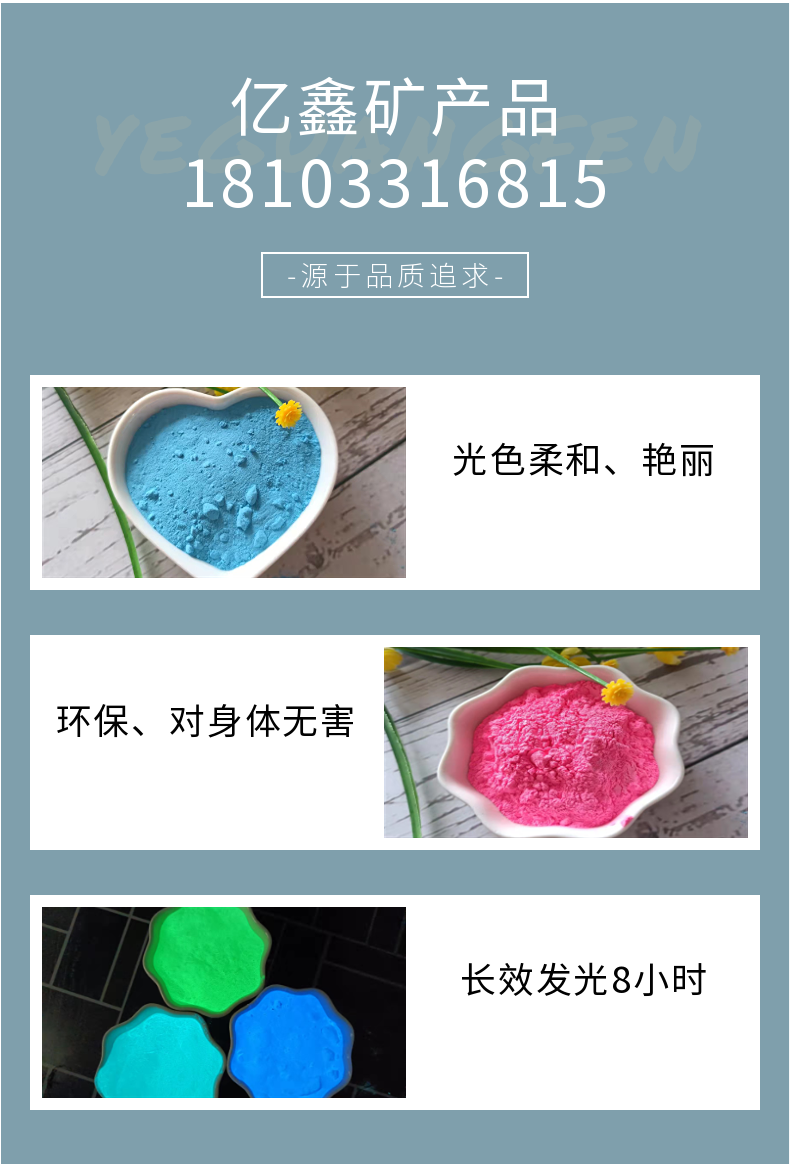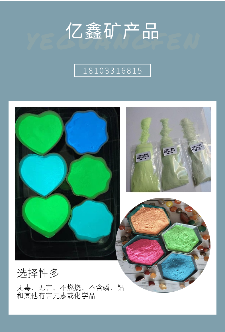 亿鑫供应高亮夜光粉 装饰造景外墙艺术涂料用荧光粉 自发光粉