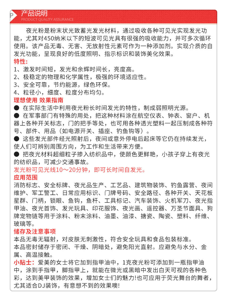 厂货直供夜光粉发光粉荧光粉发光材料注塑印刷用